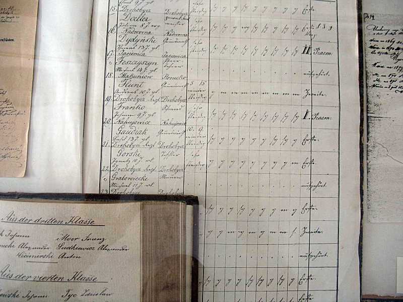 Сторінка гімназійного журналу (?) з іменем І. Я. ФранкаРозмір зображення: 800:600 піксел Фото Зенона Боровця, 21 вересня 2006 р. |