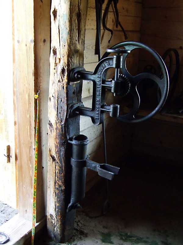 Свердлильний станокРозмір зображення: 600:800 піксел 17 квітня 2013 р. Фото М.І.Жарких. За ним у темряві – токарний станок. |