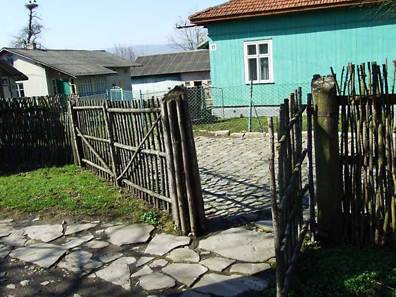 2013 р. Брама і фіртка двораРозмір зображення: 800:600 піксел Вигляд з боку двору на провулок. 17 квітня 2013 р. Фото М.І.Жарких. |