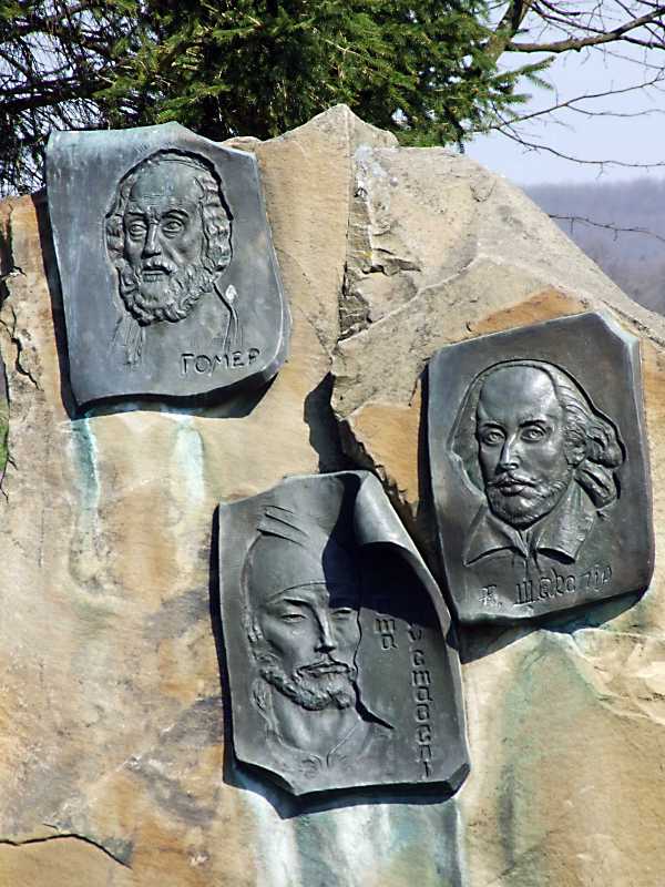 Барельєфи Гомера, Шота Руставлеі, Вільяма Шекспіра. 17 квітня 2013 р. Фото М.І.Жарких.