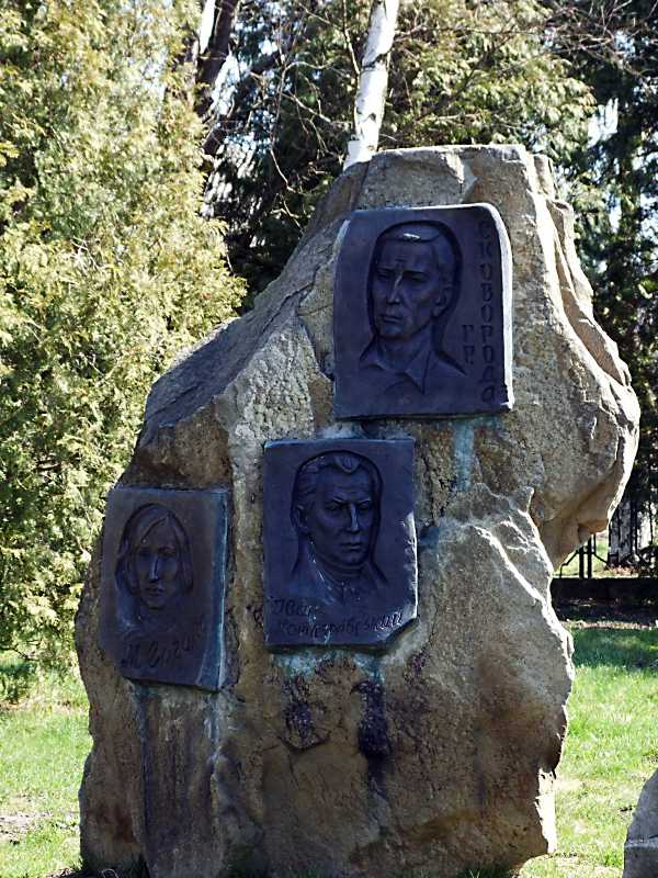 2013 р. Барельєфи Миколи Гоголя, Івана Котляревського, Григорія СковородиРозмір зображення: 600:800 піксел 17 квітня 2013 р. Фото М.І.Жарких. |