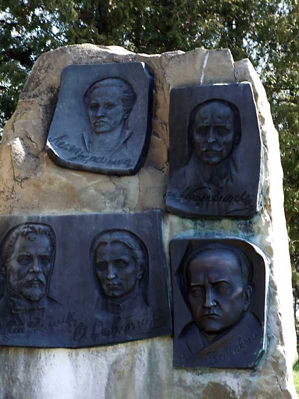 2013 р. Барельєфи українських письменниківРозмір зображення: 600:800 піксел Барельєфи Лесі Українки, Михайла Коцюбинського, Василя Стефаника, Ольги Кобилянської, Богдана Лепкого. 17 квітня 2013 р. Фото М.І.Жарких. |