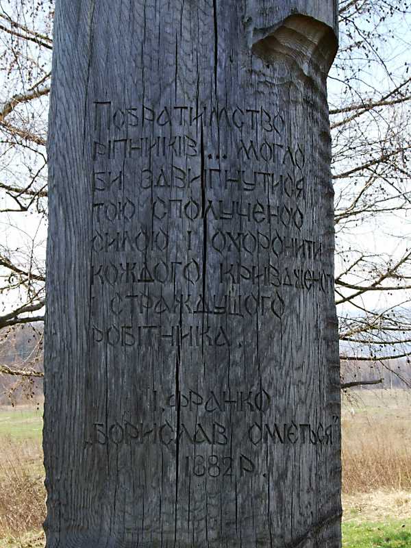 Напис на постаті 3Розмір зображення: 600:800 піксел 17 квітня 2013 р. Фото М.І.Жарких. Побратимство ріпників… могло би здвигнутися тою сполученою силою і охоронити кождого кривдженого і страждущого робітника. І. Франко «» 1882 р. |