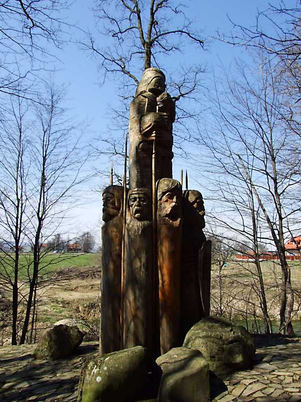 2013 р. Загальний вигляд зі сходу Розмір зображення: 600:800 піксел 17 квітня 2013 р. Фото М.І.Жарких. Вкладені елементи Півпостать Захара Беркута Дві постаті ліворуч Дві постаті праворуч