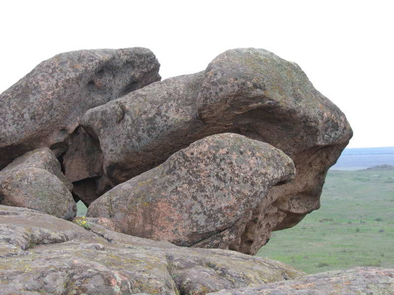 Нагромадження гранітних брил на одній з вершин Кам’яних могил (біля скелі «жаба»)Розмір зображення: 800:600 піксел Фото 7.05.2006 р.: |
