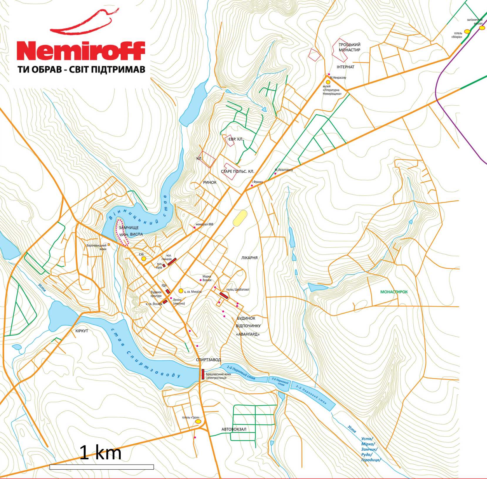 План м. НемирівРозмір зображення: 1659:1632 піксел Карта накреслена Дмитром Вортманом, опублікована 14.02.2014 р. |