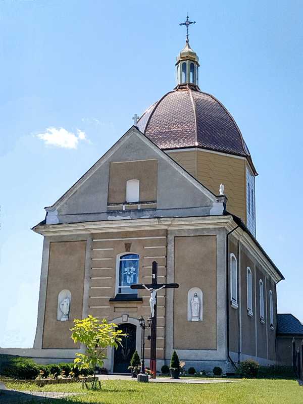Це мурована однонавова споруда, увінчана на двосхилому даху великим ліхтарем з маківкою. В кінці ХІХ ст. проведена внутрішня реставрація церкви. В 1930-х pp. поліхромію виконав художник Дем’ян Горняткевич. Частково знищена боєвими діями другої світової війни, відбудована мешканцями по її закінченні. З 1945 по 1989 р. стояла зачиненою, люди не допустили влаштувати в ній склад.