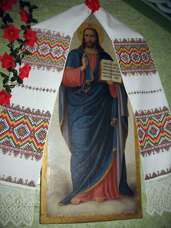 Ікона «Христос учитель»Розмір зображення: 600:800 піксел Фото Зенона Боровця і Богдана Тхора, 5 серпня 2011 р. По нижньому краю напис: «Жертва Блянки Смекаль 1901». |