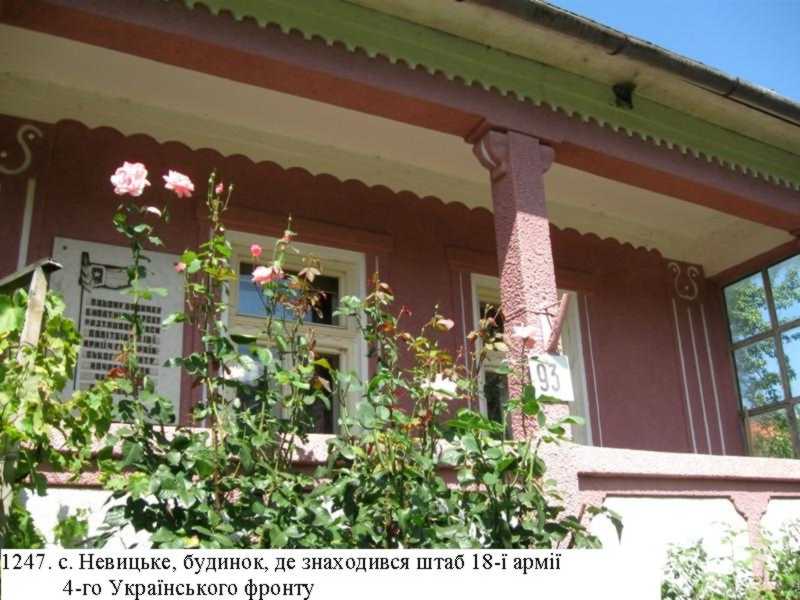 Одноповерховий, цегляний, (загальною площею 82 м2), з 6-ма кімнатами. Стріха крита етернітом. Належав родині Ю.І. Данка. Після вступу в Невицьке 27 жовтня 1944 радянських військ упродовж місяця тут діяв штаб 18-ї армії. У 1974 (з нагоди 30-річчя вступу на Закарпаття Червоної армії) на стіні будинку встановлено меморіальну дошку з написом: «В цьому будинку в жовтні 1944 р. розташовувався Політвідділ 18-ої армії 4-го Українського фронту, начальником якого був Л.І. Брежнєв». Останній тоді був першої особою в керівництві СРСР.