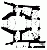 Колокольня, вторая половина XVІ в. – XIX в. Первоначальный объем в виде въездной башни входил в систему укреплений монастыря: к ней примыкали земляные валы с кирпичными стенами на них. В 1605 г. башня была разрушена. Первоначальная кладка сохранилась в основании стен первого этажа существующего объема. Восстановлена в начале XVII в. с сохранением первоначальной планировки. Башня завершалась шатром, верхний ярус был опоясан боевой галереей на консолях. Башня имела подъемный мост на цепях, кованые блоки которого сохранились в кладке стены.