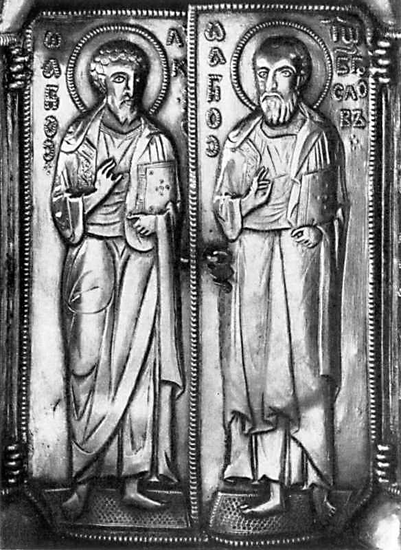 Лука, Іоан БогословРозмір зображення: 584:800 піксел Джерело: Рыбаков Б.А. Русское прикладное искусство 10 – 13 вв. – Лг.: 1971 г., с. 70. |