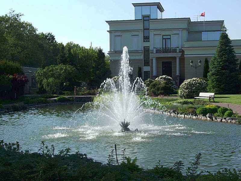 Фонтан на тлі корпусу 4Розмір зображення: 800:600 піксел Вигляд з південного сходу. Фото М. І. Жарких, 22 травня 2015 р. |
