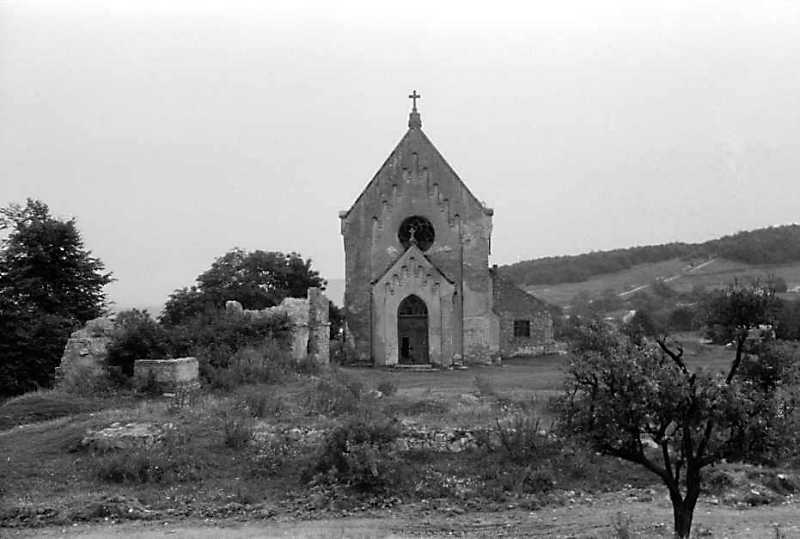 1990 р. Костел і руїни плебанії. Вигляд із заходу