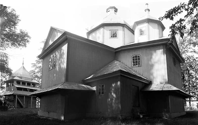 1990 р. Дзвіниця і церква. Вигляд з південного сходу