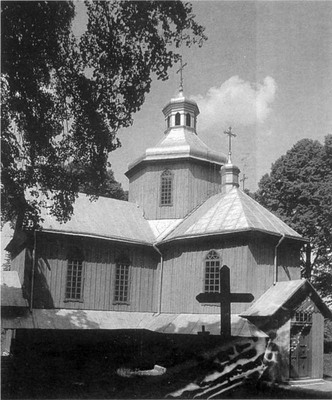 Найдавніші відомості про парафіяльну церкву походять з 1507 р. Ерекційні документи парафії датуються 1692 р. Попередня дерев’яна церква була збудована у 1794 р. на зразок костелу. У 1882 р. постала сучасна дерев’яна церква (будівничий Генрик Стац з Долини). Це хрещата в плані одноверха будівля, завершена восьмериком над навою, вкритим восьмибічною наметовою банею. Бокові рамена вінчають сліпі ліхтарі з маківками. З 1947 по 1989 р. церква стояла зачиненою.