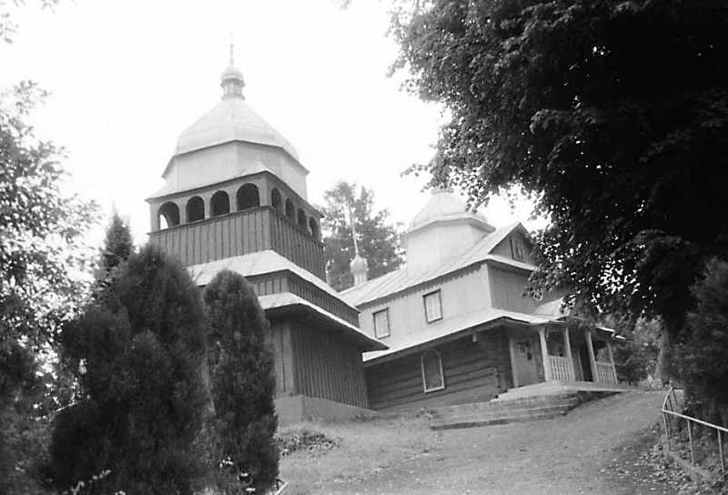 1992 р. Дзвіниця та церква. Вигляд з позиції А4Розмір зображення: 800:544 піксел 1992 р. 13 червня. Фото М.І.Жарких. Негатека, № 756-14. |