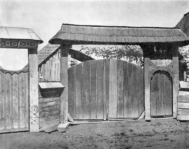 [1976 р.] ВоротаРозмір зображення: 800:632 піксел Ворота в селе Диброва Тячевского района Джерело: Макушенко П. И. Народная деревянная архитектура Закарпатья (18 – начала 20 века). – Москва: Стройиздат, 1976 г., с. 116. |