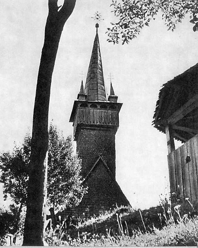 [1970 р.] Загальний вигляд з позиції С3Розмір зображення: 640:800 піксел Джерело: Гоберман Д. Н. Памятники деревянного зодчества Закарпатья. – Ленинград: Аврора, 1970 г. |
