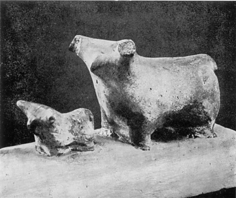 Статуэтки быков характеризуются тщательной формовкой и обработкой поверхности, выполнены в реалистической манере. Детали морды не проработаны. Туловище сформовано отчетливо: широкая ровная спина, слегка раздутые бока, хвост. Статуэтки свидетельствуют о существовании культа быка у трипольских племен.