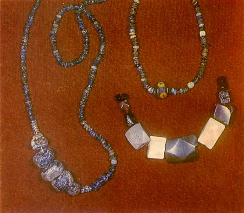 Янтарь, сердолик, стекло. Размеры от 0,5 до 2 см.