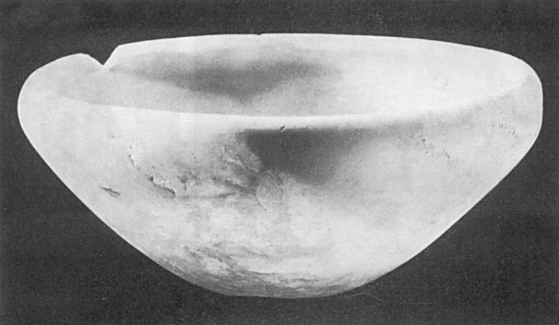 Открытая, конической формы чаша с плоским дном. Особую прелесть придает ей структура алебастрового камня – прозрачного с блестящими вкраплениями.