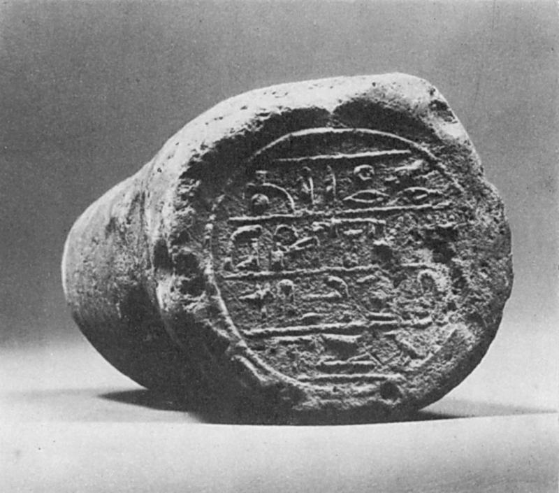 Оттиск печати содержит четыре строки иероглифического текста, с титулом и именем владельца: жреца, писца сокровищниц Амона-Усерхата.