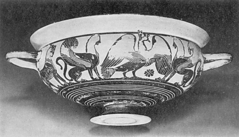 Кубок для вина. Украшен фризом с изображением сфинксов, пантер, сирен и гусей.