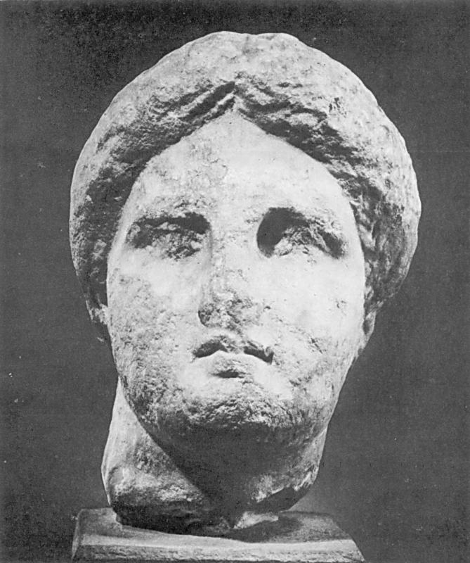 Голова молодой женщины слегка склоненная набок. Волнистые волосы уложены спереди в виде венка и разделены на прямой пробор. Задумчивое выражение лица с оттенком некоторой отрешенности, мягкая моделировка поверхностей сближает скульптуру с произведениями круга Праксителя.