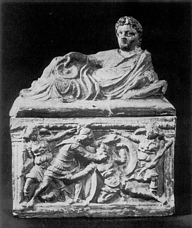 В надписи над рельефом указано имя умершего, чей пепел хранился в урне. Такие урны были широко распространены во II в. до н. э. в области Клузия.