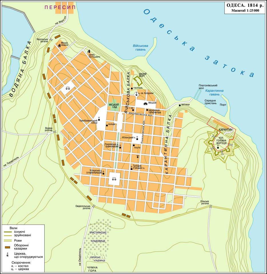 План м. Одеса (1814 р.)Розмір зображення: 934:960 піксел Карта накреслена Дмитром Вортманом, опублікована 14.02.2014 р. Умовні знаки |