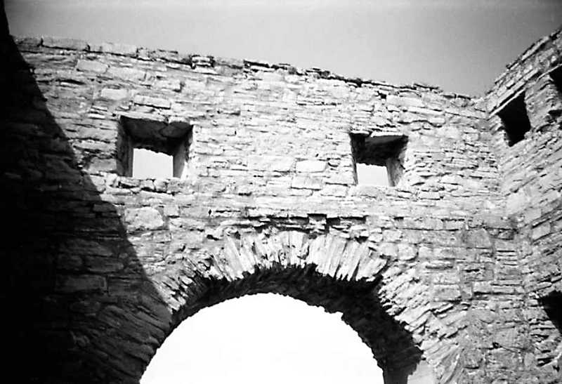 Верхній ярус з бійницямиРозмір зображення: 800:547 піксел 1989 р. 20 серпня. Фото М.І.Жарких. Негатека, № 594-07. |
