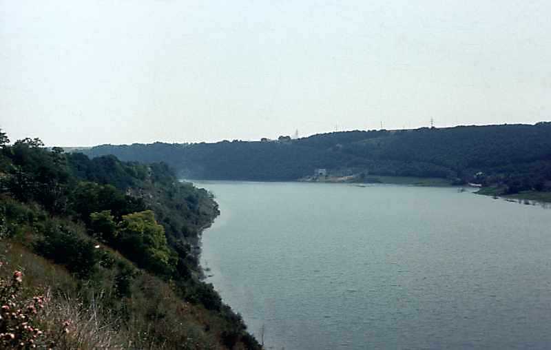 1989 р. Вид на Дністер від фортеці. Вигляд із заходуРозмір зображення: 800:508 піксел 1989 р. 20 серпня. Фото М.І.Жарких. Слайдотека. |