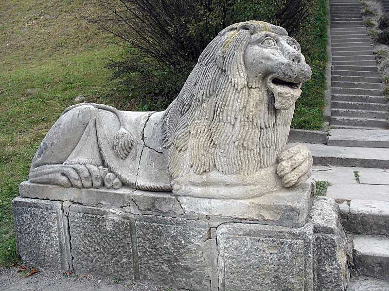 2006 р. Скульптура лева перед сходами до замкуРозмір зображення: 800:600 піксел Фото Зенона Боровця і Богдана Тхора, 21 жовтня 2006 р. |