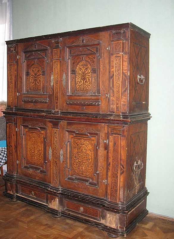 Шафа Розмір зображення: 585:800 піксел (У кімнаті 7). Фото Зенона Боровця і Богдана Тхора, 26 жовтня 2006 р. Вкладені елементи 2006 р. Загальний вигляд шафи 2009 р. Фронтальний вигляд шафи