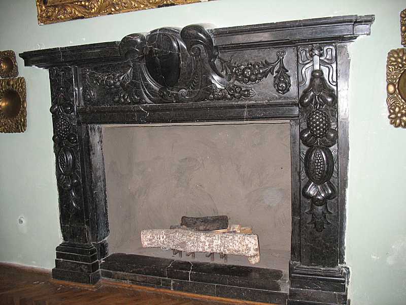 В південну стіну залу вмонтовано великий камін другої половини XVII ст. з чорного мармуру, який має по центру герб польського короля Яна III Собеського. Камін походить із Жовквівського замку.