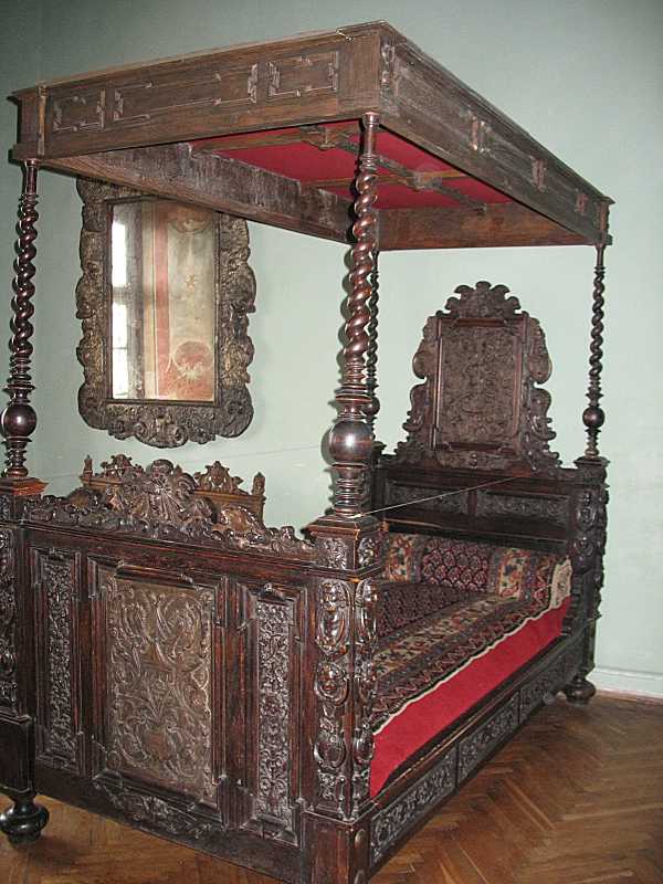 З розповсюдженням у Європі французької моди на парадні алькові кімнати (окремі інтер’єри або частини, відділені від великих залів), споруджено альков і в Олеському замку. У ньому знаходиться ліжко першої половини XVII ст. голландської роботи, у щедрому декорі якого використано мотиви акантових гілок, квітів, ваз, маскаронів, зображення птахів.