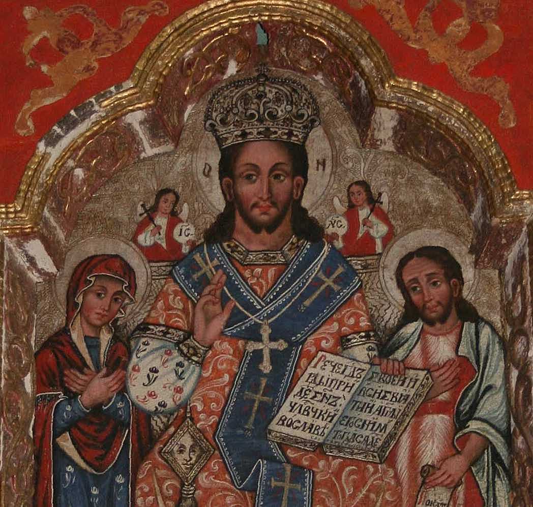 Деісус (центральна частина)Розмір зображення: 1048:997 піксел Фото Зенона Боровця і Богдана Тхора, 13 серпня 2009 р. |