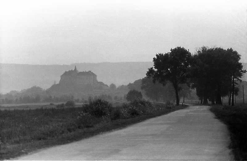 1988 р,. Силуетний вигляд замку з північного сходуРозмір зображення: 800:523 піксел 1988 р. 15 серпня. Фото М.І.Жарких. Негатека, № 456-17. |
