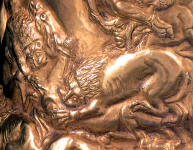 Ярус 3: два леви терзають коняРозмір зображення: 647:502 піксел Джерело: Gold der Steppe: Archaeologie der Ukraine. – Schleswig: 1991, S. 366. |