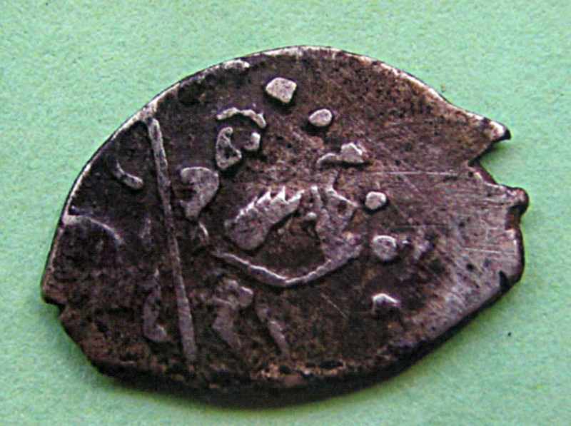 Копійка Івана Грозного (1534 – 1584 рр.). Срібло. Цареборисівська фортеця. Новгородський монетний двір, 1535 – 1538 рр. Аверс. Розкопки І.В.Голубєвої 2004 р.