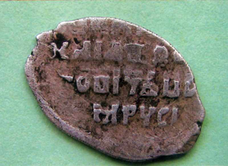 Копійка Михайла Федоровича (1613 – 1645 рр.). Срібло. Цареборисівська фортеця. Московський монетний двір, 1633 р. Реверс. Розкопки І.В.Голубєвої 2004 р.