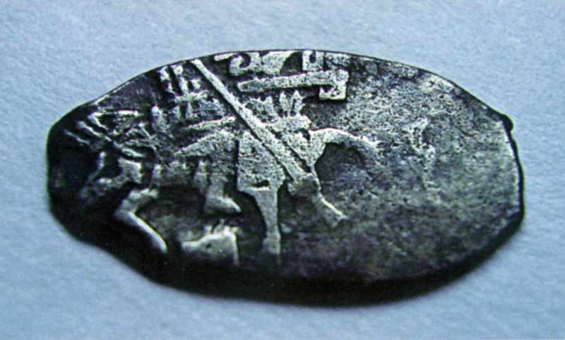 Копійка Олексія Михайловича (1645 – 1676 рр.). Срібло. Цареборисівська фортеця. Московський монетний двір, 50-ті рр. XVII ст. Аверс. Розкопки І.В.Голубєвої 2004 р.