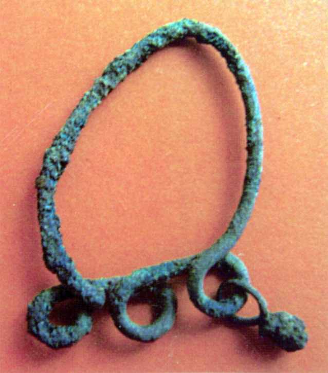 Сережка з привіскою. Мідь. Цареборисівська фортеця. Кінець XVI – XVII ст. Розкопки І.В.Голубєвої 2004 р.