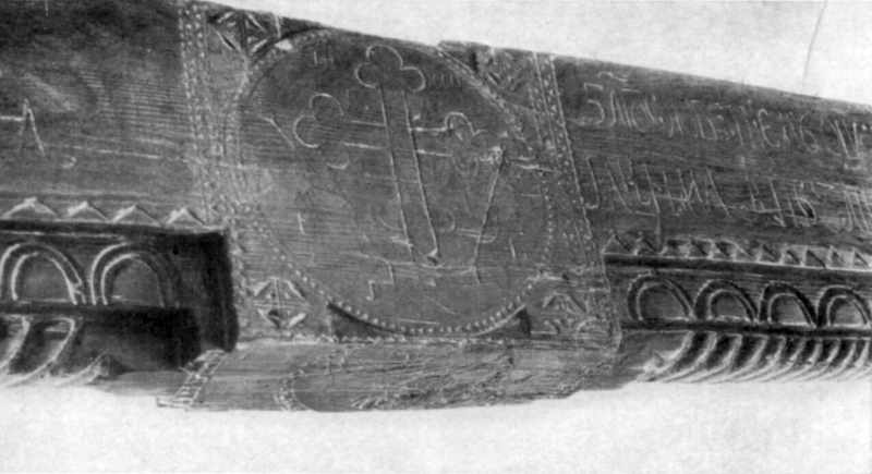 Різьблений сволок, 1753 р.Розмір зображення: 800:435 піксел Різьблений сволок, м. Остер Чернігівської обл., 1753 р. Джерело: Юрченко П.Г. Дерев’яна архітектура України. – К.: 1970 р., с. 154. |