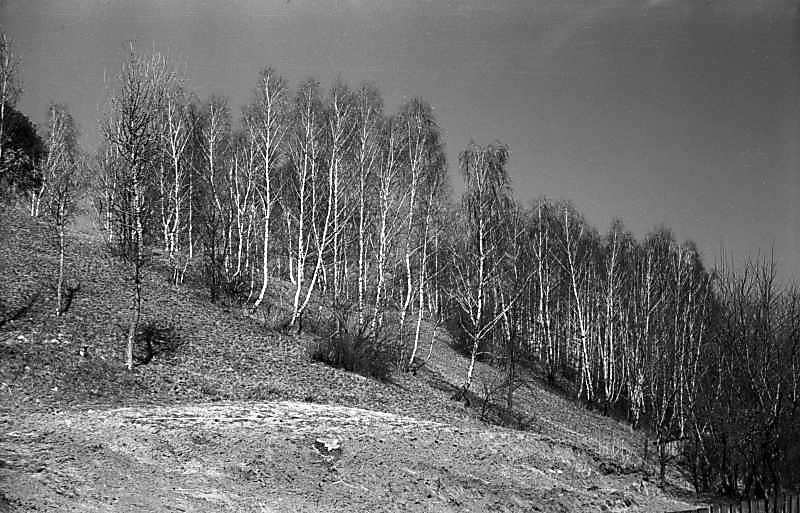 1978 р. Вид городища з боку поляРозмір зображення: 800:513 піксел 1978 р. 11 квітня. Фото М.І.Жарких. Негатека, № 034-02. |