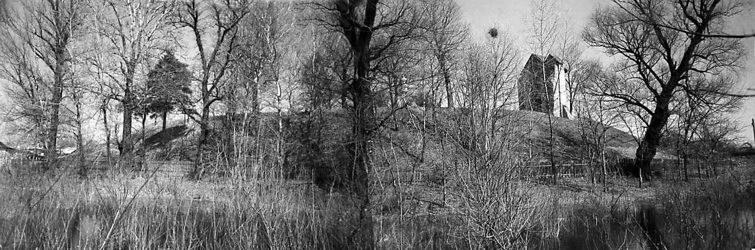 1978 р. Панорама городища з півдняРозмір зображення: 1494:496 піксел 1978 р. 11 квітня. Фото М.І.Жарких. Негатека, № 034-35+6. |