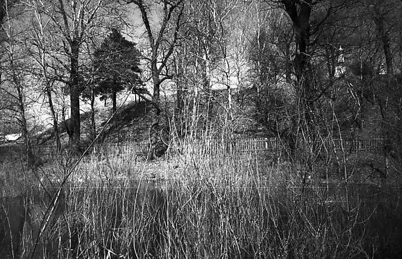 1978 р. Західна частина городища. Вигляд з півдняРозмір зображення: 800:515 піксел 1978 р. 11 квітня. Фото М.І.Жарких. Негатека, № 035-04. |