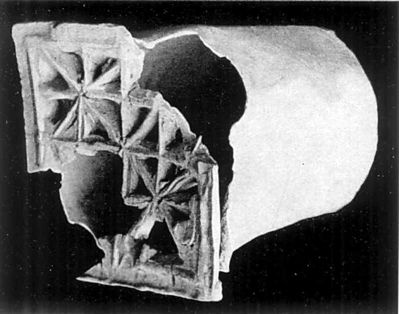 Циліндричні кахлі вмуровували в стіни печі не щільними правильними рядами, а хаотично або в кілька ярусів на певній відстані одна від одної, їхні глибокі отвори псували зовнішній вигляд печі, їх було важко чистити. Тому на кахлях з’являється решітчаста орнаментальна плитка, яка, прикрашаючи стінки печі, не заважала циркуляції повітря. Єдиним цілим зразком такої кахлі є теракотова кахля XV століття з Острозького музею. В інших місцях Правобережжя виявлено переважно уламки, які могли належати кахлям цього типу (с. 394).