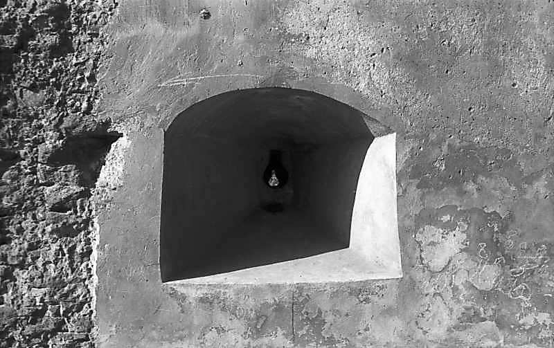 1976 р. Бійниця в нижньому ярусі північного фасадуРозмір зображення: 800:503 піксел 1976 р. 10 червня. Фото М.І.Жарких. Негатека, № A131-35. |