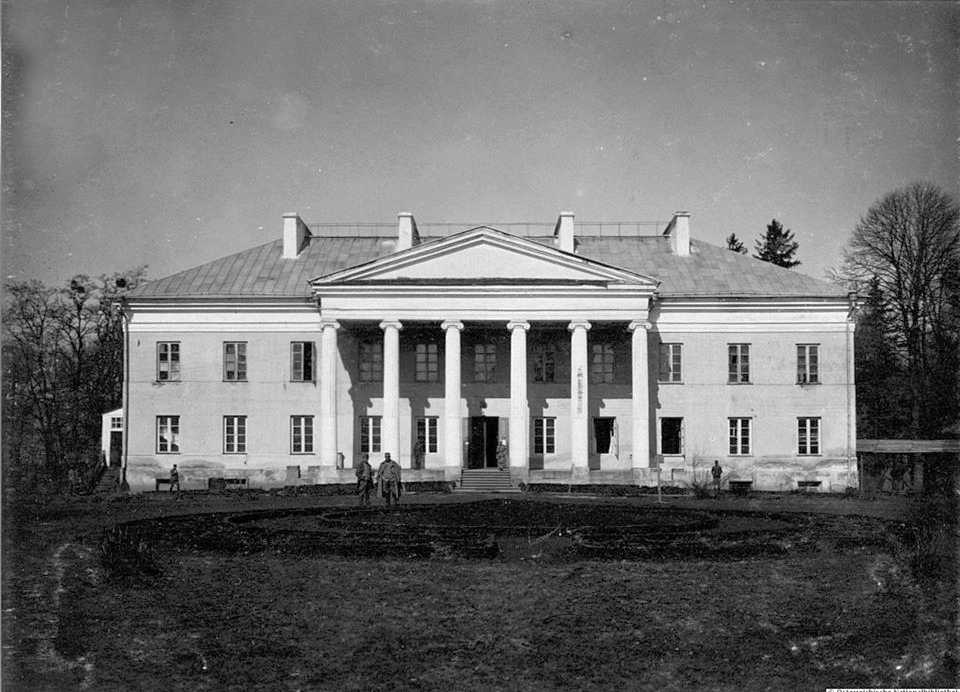1916 р. Головний фасадРозмір зображення: 960:692 піксел Фото з альбому «Дубенський форт-застава» Підпис: «Korpskommando in Ledochowski in Ostrozec, aufgenommen in Wolhynien in März 1916». |
